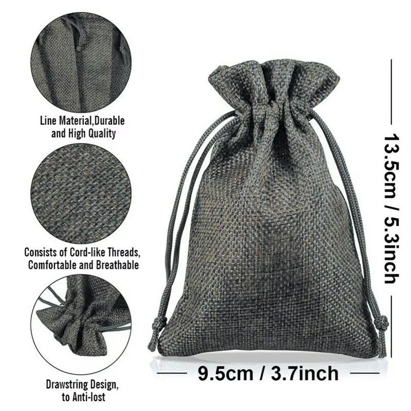 Conjunto-A: 3 verschiedene Farben (8 bege, 8 blau, 8 grau, Taschengröße: 10 * 14 cm), 24 digitale Aufkleber, 24 Holzklammern, 10 m Hanfseil. Die Stofftasche besteht aus natürlichem Leinen und hat keinen unangenehmen Geruch.