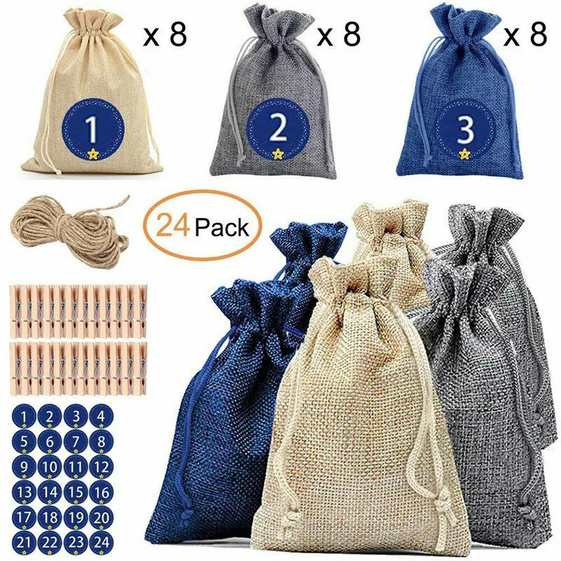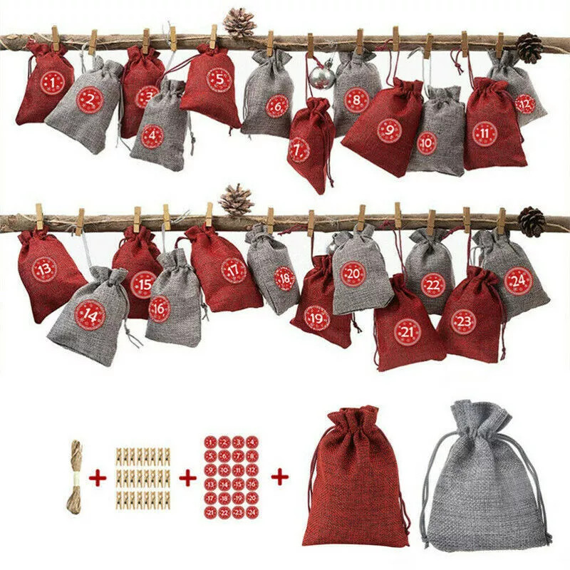 Calendario de Adviento DIY para rellenar – 24 bolsas de regalo – Kit completo de manualidades
