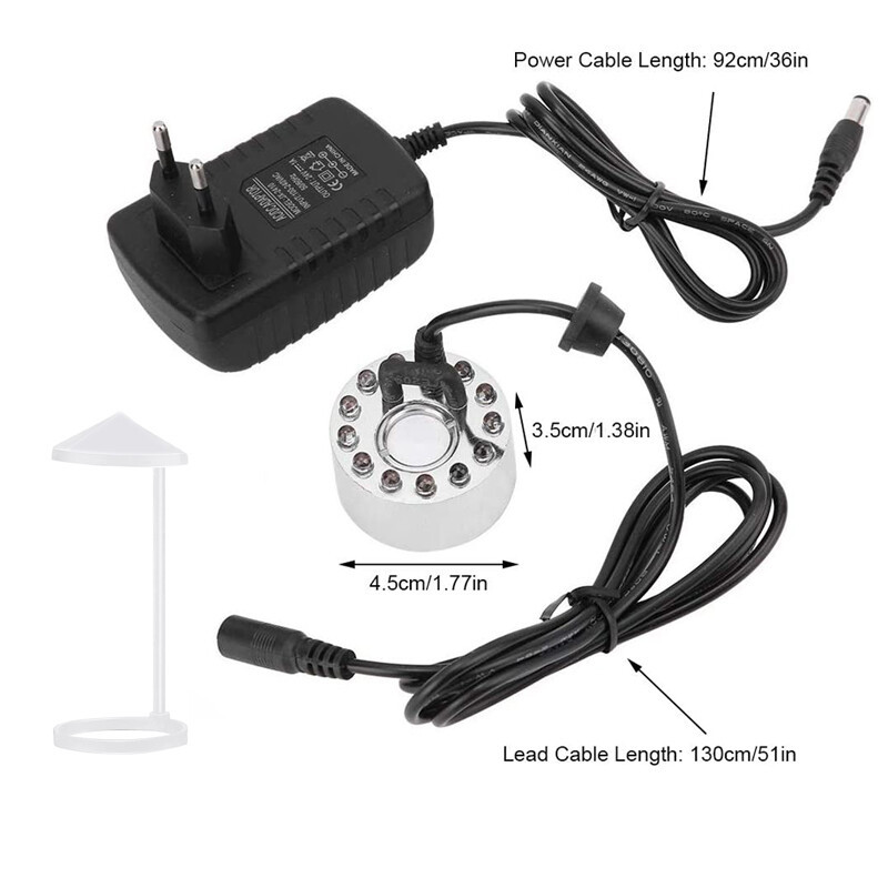 Umidificador de ar ultrassônico com 12 LEDs e 24V, gerador de névoa, atomizador de fonte de água.