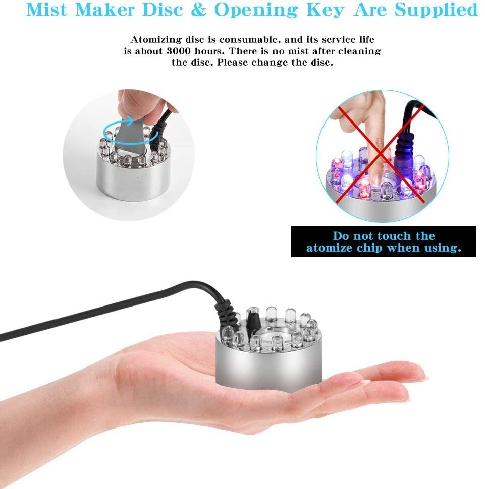 【Breite Anwendung】 Kann einen erstaunlichen Nebeleffekt hinzufügen, gute Wahl, um dem Teich, dem Brunnen, dem Steingarten und der Topflandschaft eine illusorische und verzauberte Atmosphäre zu verleihen. Abnehmbarer Spritzschutz für Ihre Wahl, die Höhe ist einstellbar, wodurch das Auslaufen von Wasser verhindert werden kann. Bitte beachten Sie, dass ein zu niedriges Schneiden des Schutzes die Nebeldiffusion beeinträchtigen kann. Se você morrer, um den Schutz zu verbergen, você pode usar este Leuchte mit elektrischem Lüfter wennden. Der Nebel pode ser ausbreiten Wind e Sie können eine bessere Erfahrung machen.